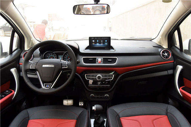 内饰倒是让人眼前一亮,红黑色的搭配彰显了年轻人的活力,顶配车型甚至还采用了皮质包裹,对于这么一款售价的SUV来说,有点意思。