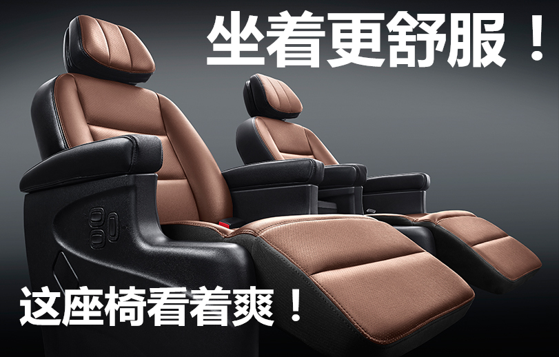 MPV的第二排座椅,作为喜闻乐见的老板座,独立头等舱皮质座椅,头枕、脚托、靠背电动可调,坐得舒服才能让老板高兴!