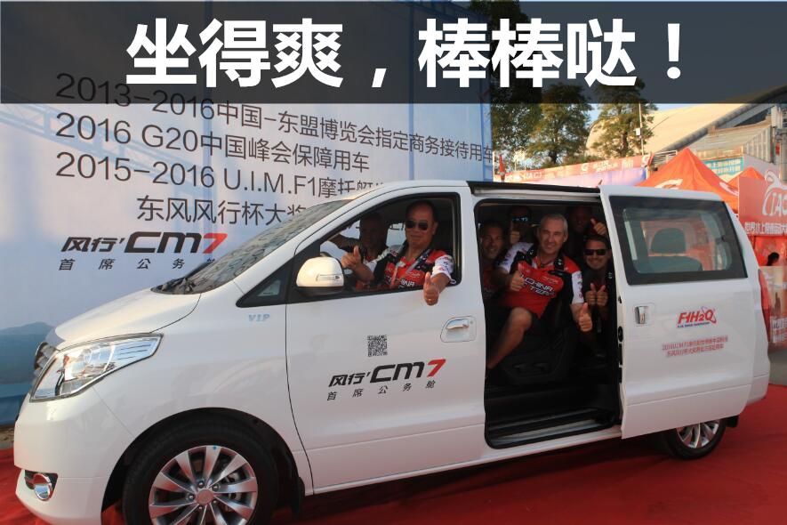风行CM7表现有多牛?自上市以来,连续多年成为湖北两会的指定用车。G20峰会、东盟博览会、F1摩托艇世锦赛等一系列高端会议和国际赛事,都能发现风行CM7的身影。业界最火官方指定用车之一,首席公务舱人人爱,14.99~21.99万即可收入囊中。