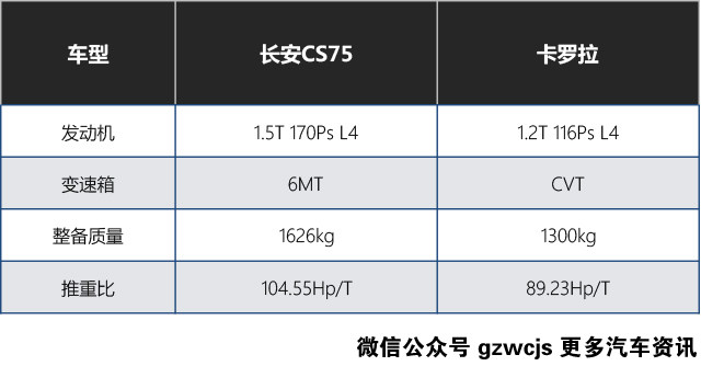 继续以长安CS75和卡罗拉作为对比的例子,其实两车的动力都只是买菜的级别而已,为什么?看看下面的对比就知道。