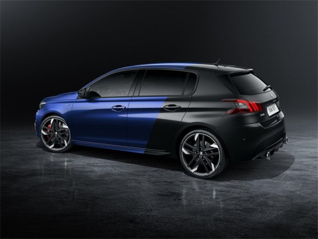 官图中的308 GTi采用了双色车身涂装,车身尾部同样采用双边单出的排气布局,但底部加上了夸张的扩散器,让它更符合“小钢炮”的形象。