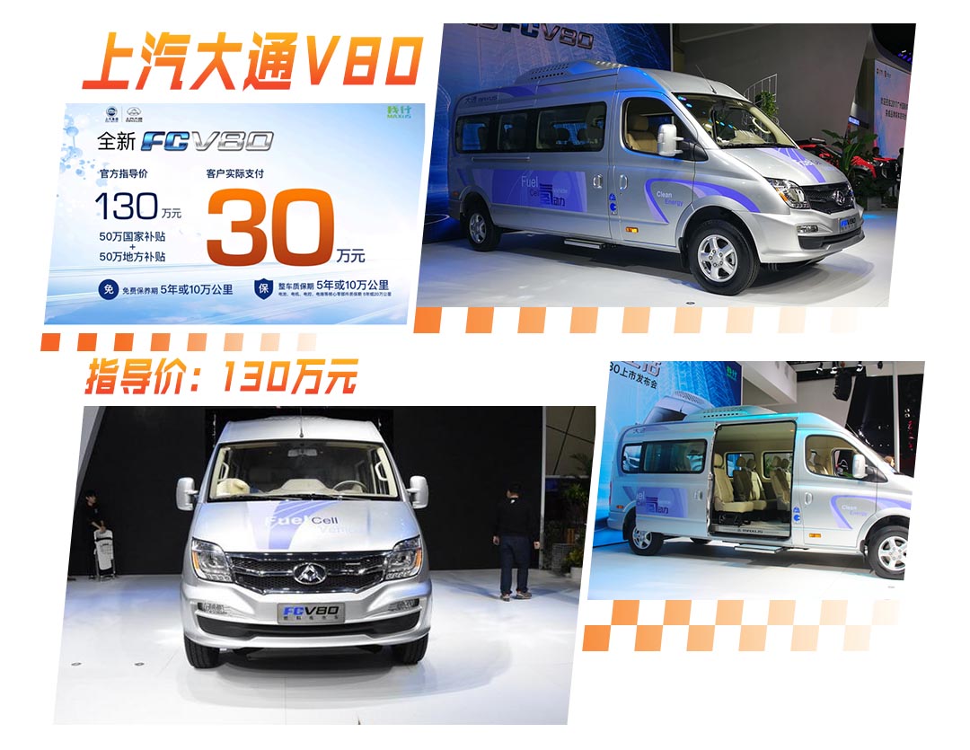 此外在本次车展上,还有一辆新上市的新能源车引起了我们的注意,那就是上汽大通推出的V80氢燃料电池车。该车外观上和普通燃油版车型基本一致,特殊的动力系统使得它格外与众不同,据悉该车最大续航里程500km,单次加氢仅需3-5分钟,引人关注的是该车国家及地方可补贴100万元!