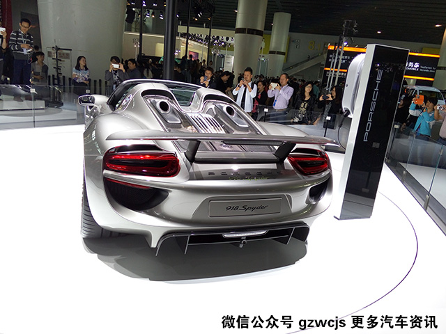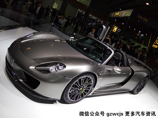 保时捷918,位于保时捷展台一角,不注意看很容易忽视掉它,它是一台非常NB的车,有多NB呢?纽博格林北环赛道大家都知道吧?世界上最艰险的赛道,918是目前在这条赛道上跑得最快的量产车,也是国外媒体公认的,新时代三大顶级超跑中最快的一台。它拥有一台高转速自然吸气V8发动机,在3个电机的配合下,最大功率887马力,四轮驱动,百公里加速2.6秒(保时捷的内部消息,这车真实数据是2.3秒)。