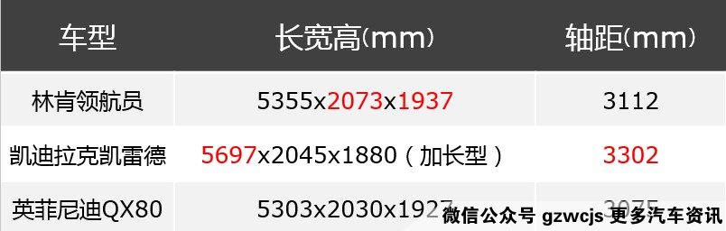 全新一代领航员虽然还是在用F-150的平台,但是外观上已经完全找不到皮卡的影子了,采用了林肯最新家族化设计语言的领航员整体造型既霸气又优雅,比起上一代车型有了脱胎换骨的变化。到了全尺寸SUV这个级别的车,空间都不会有什么的问题。而车身尺寸方面,领航员的长宽高为:5355x2073x1937mm,轴距达到了3112mm,比QX80略大,但是比凯雷德加长型稍短一点。