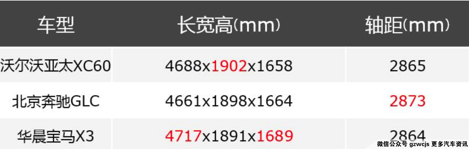 (注:华晨宝马X3尺寸数据来源于工信部)