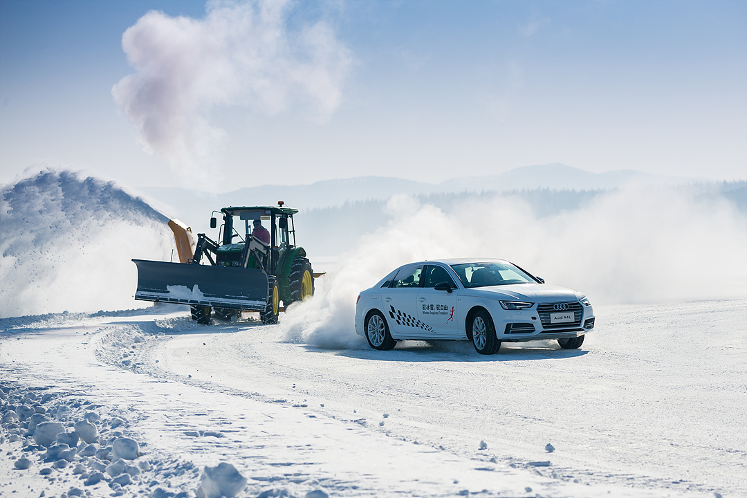 而在练习的过程中,不能怕失误,在这些用雪堆成的赛道上,失误的成本是很低的。不小心撞上了雪墙,车大部分时候都是毫发无损,此时可以重新打开ESC,并尝试用奥迪的quattro四驱系统走出困境,只要不是卡在雪堆中,quattro都能够通过动力的分配来助你脱困。