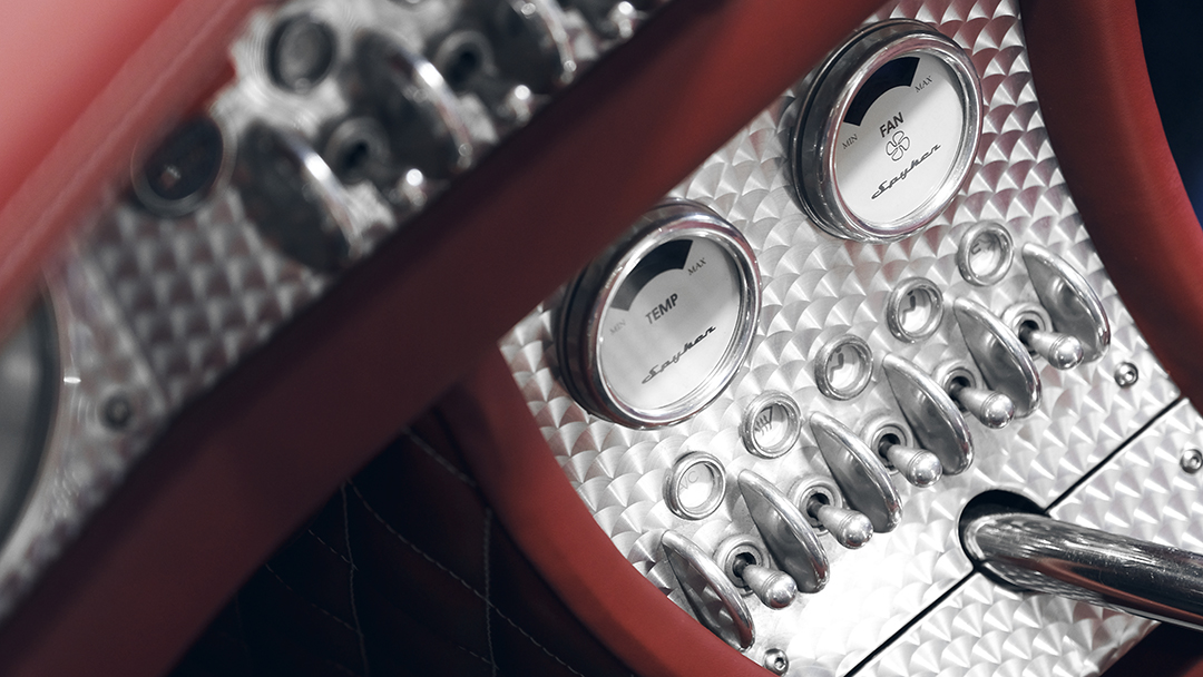 纯手工制作的真皮内饰透着一丝奢华的气息,但是大量外露的铝合金和不锈钢部件却又带来浓厚的机械感,这种软和硬的碰撞带来的奇特感觉是在目前市面上绝大部分车型都无法感受到的。