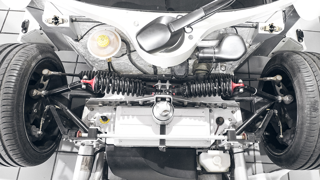 双叉臂悬挂搭配推杆式避震,这是一台顶级高性能跑车的最佳悬挂系统配置。