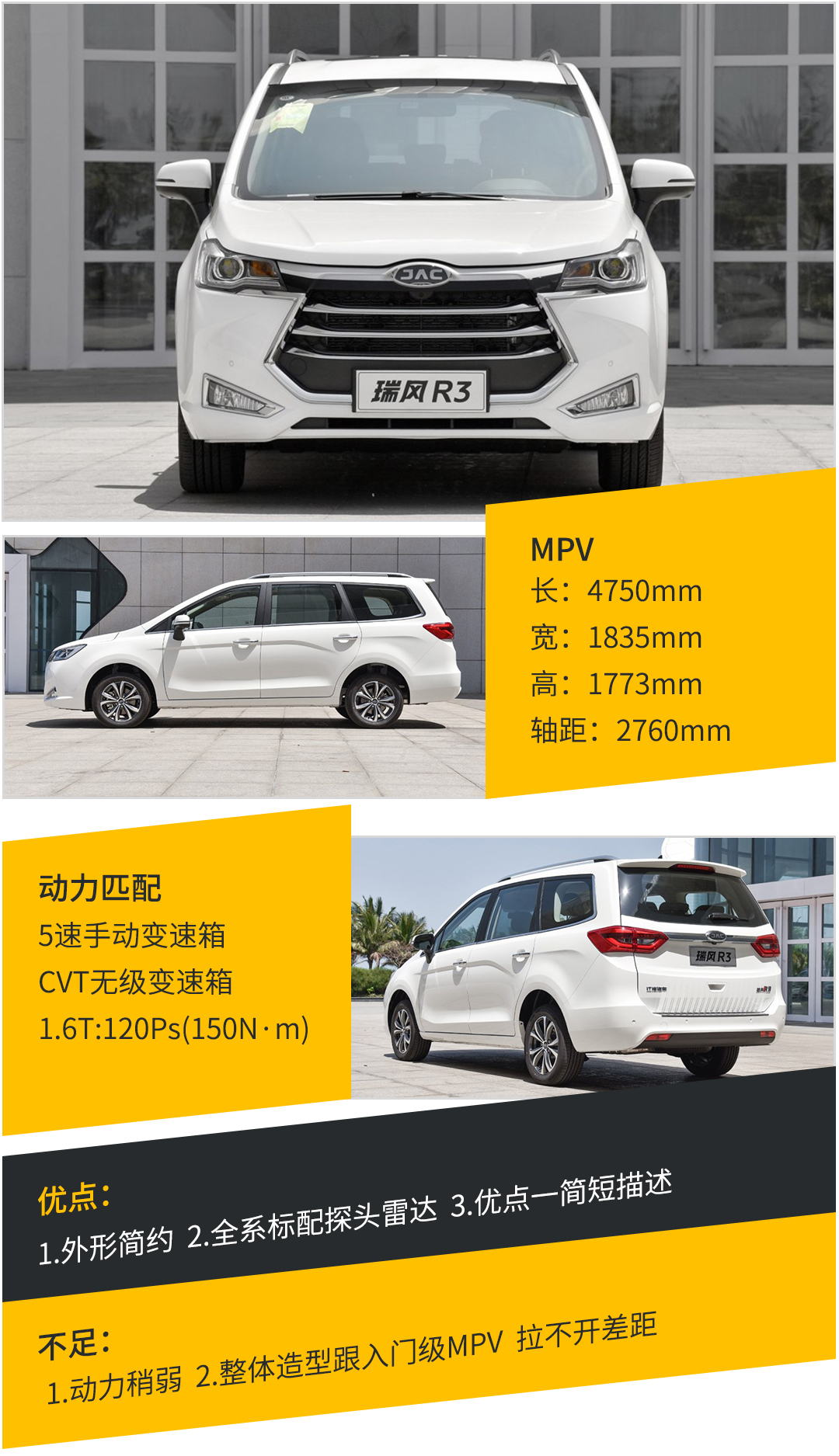 在相近的价格区间里自主品牌可选的MVP很多,当然瑞风R3这次很明显就是瞄准宋MAX和长安凌轩来的了。这两款车的驾驶品质和品牌知名度完全能跟江淮瑞风一较高下,很期待R3之后与它们的竞争。