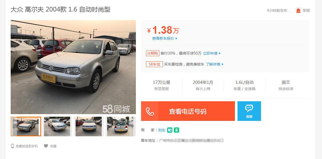 同样为大家带来大众旗下的车型-高尔夫,1万块钱买高尔夫听起来有点不可思议,但事实上高尔夫要比捷达贵上不少,我们比较熟悉的是第四代高尔夫(5代没有国产)。所以二手车市场低价位高尔夫流通比较多的就是四代高尔夫了,1万多价格主要集中在04-05款上。