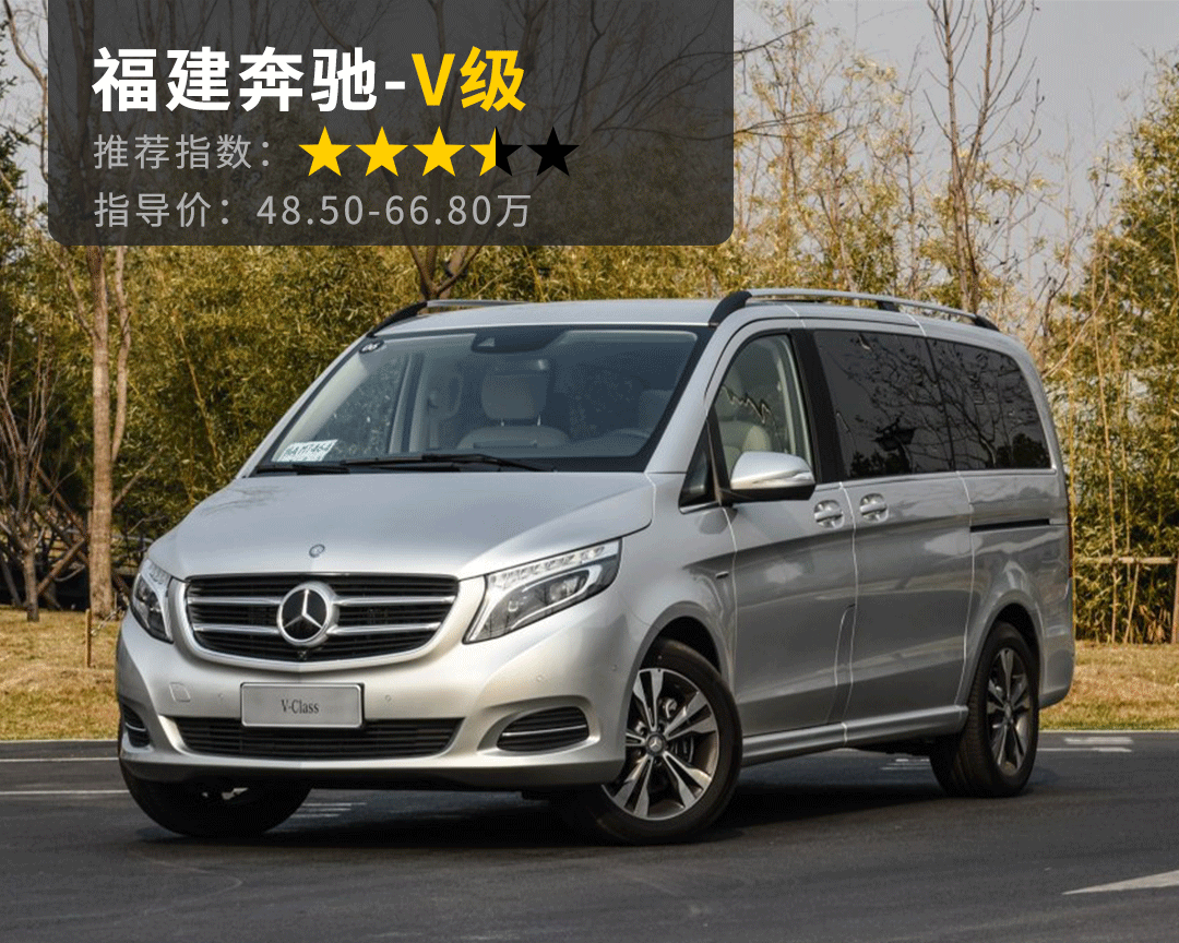 推荐理由:如果你嫌前面两款车的品牌不够高端,那么就看看奔驰V级,超大的车长和轴距也绝对能够满足你对载人和载物的空间需求,奔驰豪华风格的内饰也不会让你在接待重要客户的时候显得没面子。但是,V级终究是从威霆这样的货运面包车的底盘上研发而来,所以在乘坐舒适性上是比较差的,如果你的乘客较为懂车,那么你这个逼就装不成了。加之V级本身还是奔驰,买的不便宜,因此只能给个三星半推荐分。