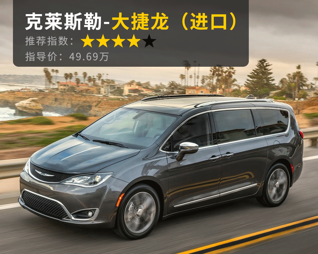 推荐理由:推荐7座MPV,怎少得了MPV鼻祖克莱斯勒大捷龙?你若购买中规大捷龙,你将享受到非常舒适的第二排独立座椅和酣畅淋漓的3.6 V6自吸引擎,而你若购买平行进口美/加规大捷龙,那么第二排和第三排座椅还能完全收纳在底盘下,形成纯平载物空间,拉洗衣机都没问题,而代价则是座椅没有中规那么舒适。不过FCA集团的车,可靠性还是得打个问号,因此纵使大捷龙空间表现如此出色,也只能给个四星推荐,让大家在几款车里面再仔细考虑啦!