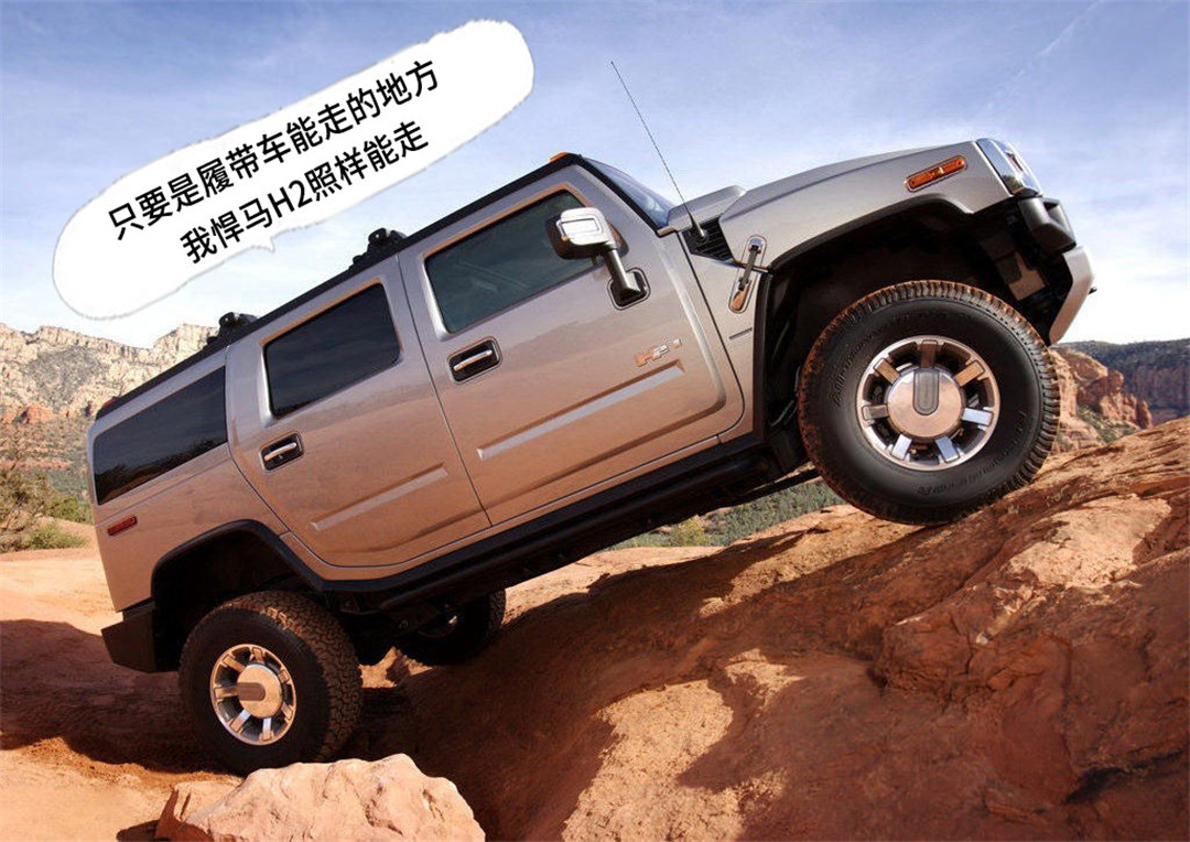 你以为牧马人已经是越野圈的大神,但在悍马H2面前,牧马人也只能乖乖叫“爸爸”。独立梯形底盘、惊为天人的接近角和离去角、中央轮胎充气系统、泄气保用轮胎。武装到牙齿的悍马H2,基本上只要履带车能走的地,它照样能走。