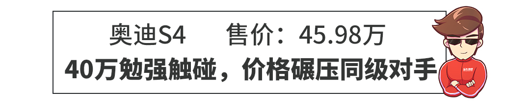 奥迪S4制胜的法宝不仅仅是它那令人羡慕的3.0T V6发动机、quattro四驱系统还有4.7秒破百的加速实力,而更是它在拥有这样强悍实力的同时,其售价也仅仅为45.98万元。要知道它的同级别对手C43 AMG、340i M都是妥妥的60-70万人民币售价的选手。