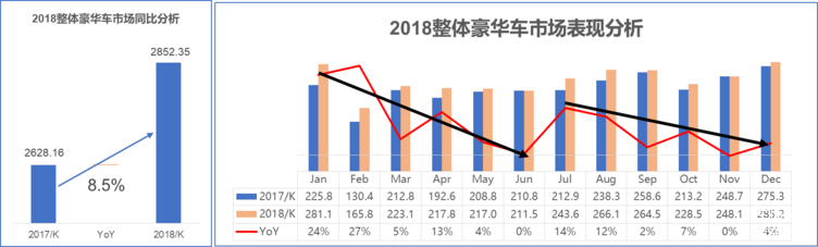 市场占有率在某程度上就等同于一款车型、一个品牌乃至一个细分领域在市场的生存空间。而根据《豪华车市场白皮书》在今年年初发布的数据显示,2018年豪华车市场累计销量为285万辆,同比增长8.5%。这也从侧面印证了人们的收入增加,从而在汽车市场引领的消费升级趋势的真实性。