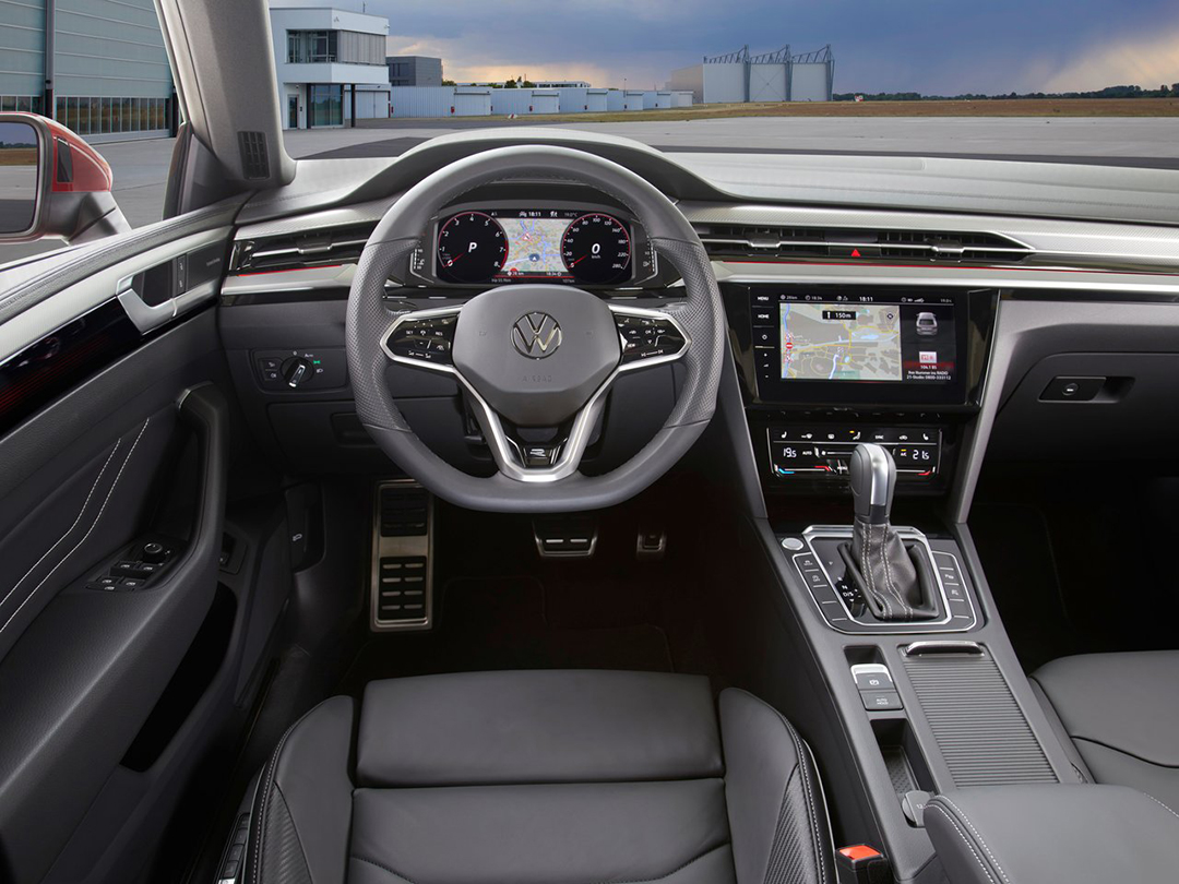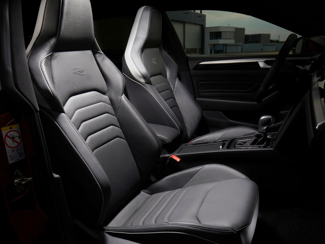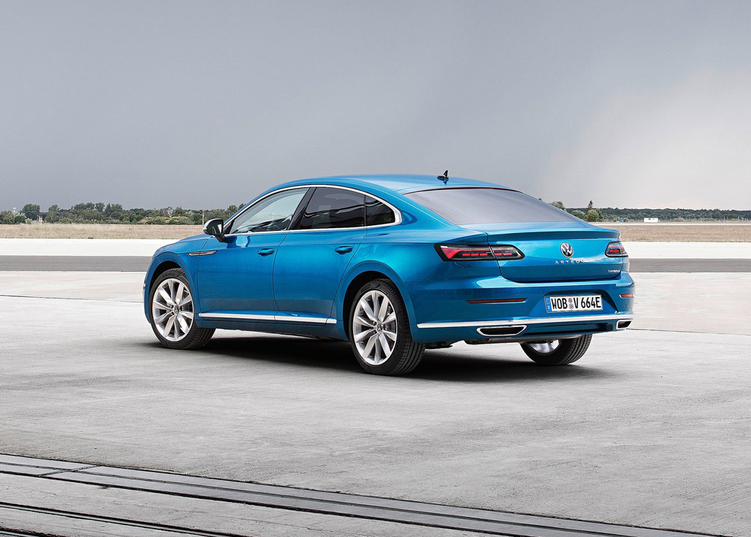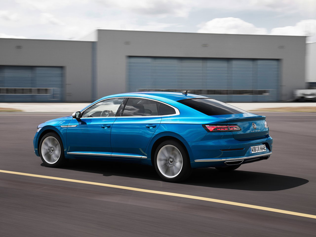 侧面永远是Arteon最美的角度,从第一代车型延续至今的极其流畅的车顶弧线,成为了大众Arteon的看家本领。全新样式的轮毂也是Arteon的亮点,如今双色的轮毂更加具有运动气质;当然,R系列车型会使用更加打尺寸的轮毂,以及更加多活塞的刹车卡钳,从图中来看,似乎已经使用上了打孔刹车盘。辐条更少,更纤细的轮毂更加有利于刹车系统的散热,这也是为什么R系列车型用五辐Y型轮毂的其中一个原因。