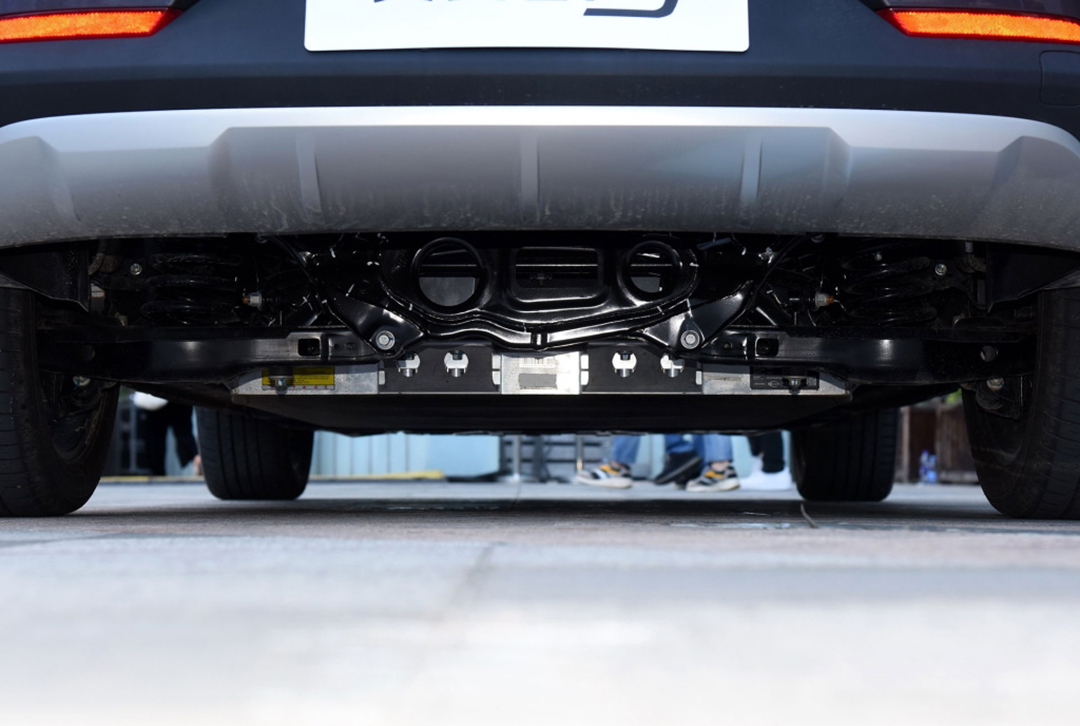 车身侧面设计以简洁线条勾勒出清晰的轮廓,腰线从前翼子板一直延续到尾灯处,视觉上给人非常修长的感觉。前翼子板两侧的快充和慢充口,在无形当中彰显了它的新能源车身份。