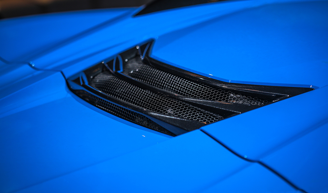 外观方面,科尔维特C8采用了全新设计的蜂窝状进气格栅、夸张的扰流饰板以及非常运动的前后包围,并且由于这是一台采用中置发动机的车型,因此座舱更靠前,车尾也相对更长。