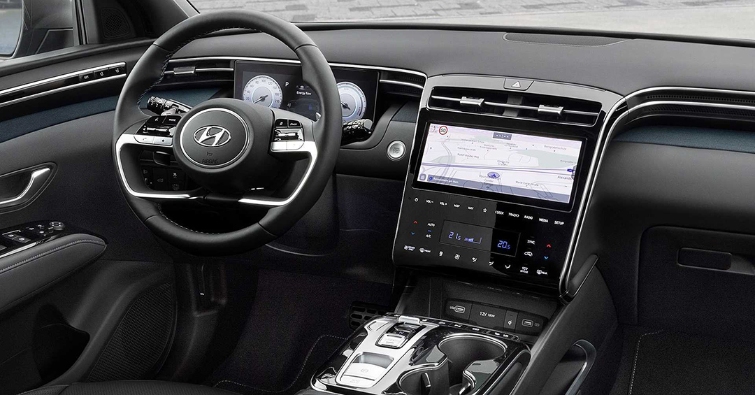 内饰上与折线复杂的外观设计截然不同,其内饰布局很好体现了“整体感”和“简洁”。全新途胜内饰座舱采用了环抱式设计,将空调出风口,中控大屏幕将其整合成一体,融合得很好,不会像其他车内饰布局很凌乱,使其全新途胜的内饰看起来“很舒服”。