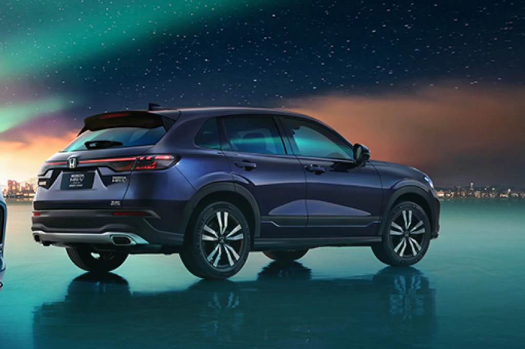 外观方面,HR-V与ZR-V 致在有着一定的差异。其纯燃油版本车型将采用倒梯形的进气格栅和带有LED灯带的LED日行灯组,前包围两侧带有导风口装饰,还配备有个性十足的五辐大轮圈、贯穿式尾灯组以及燃油版专属的双边共双出式排气系统。