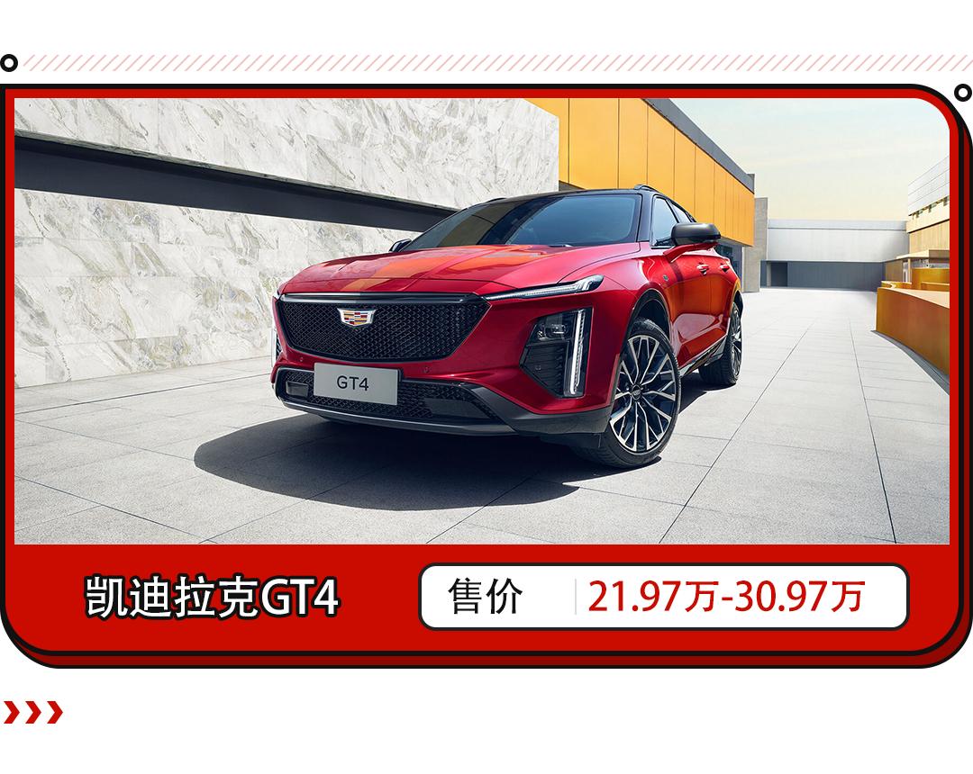 5月28日,凯迪拉克GT4正式上市。新车基于通用E2XX平台打造,涵盖了1.5T和2.0T两款动力总成,并且根据配置差异共推出了4款车型,售价区间为21.97万-30.97万元。