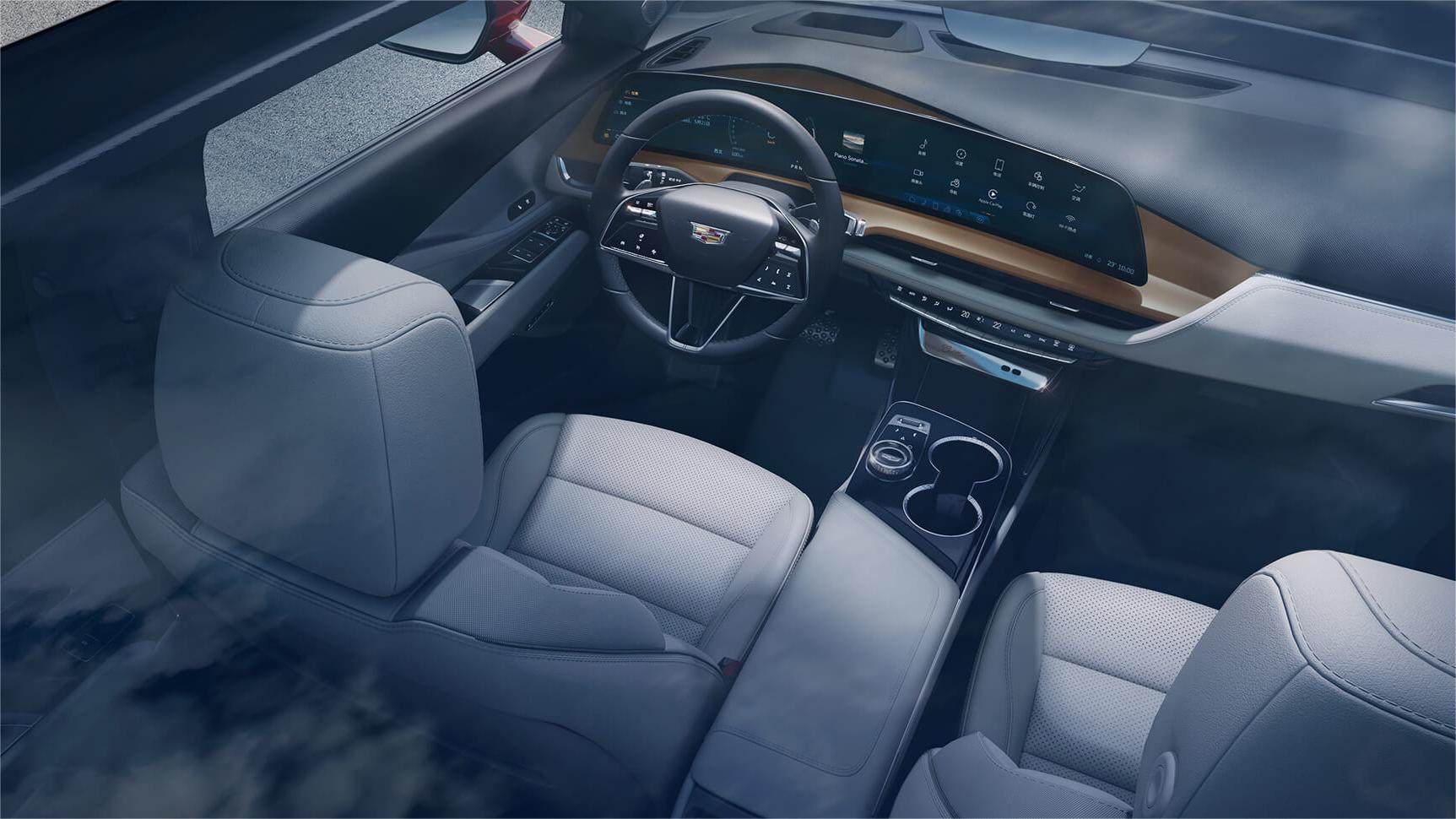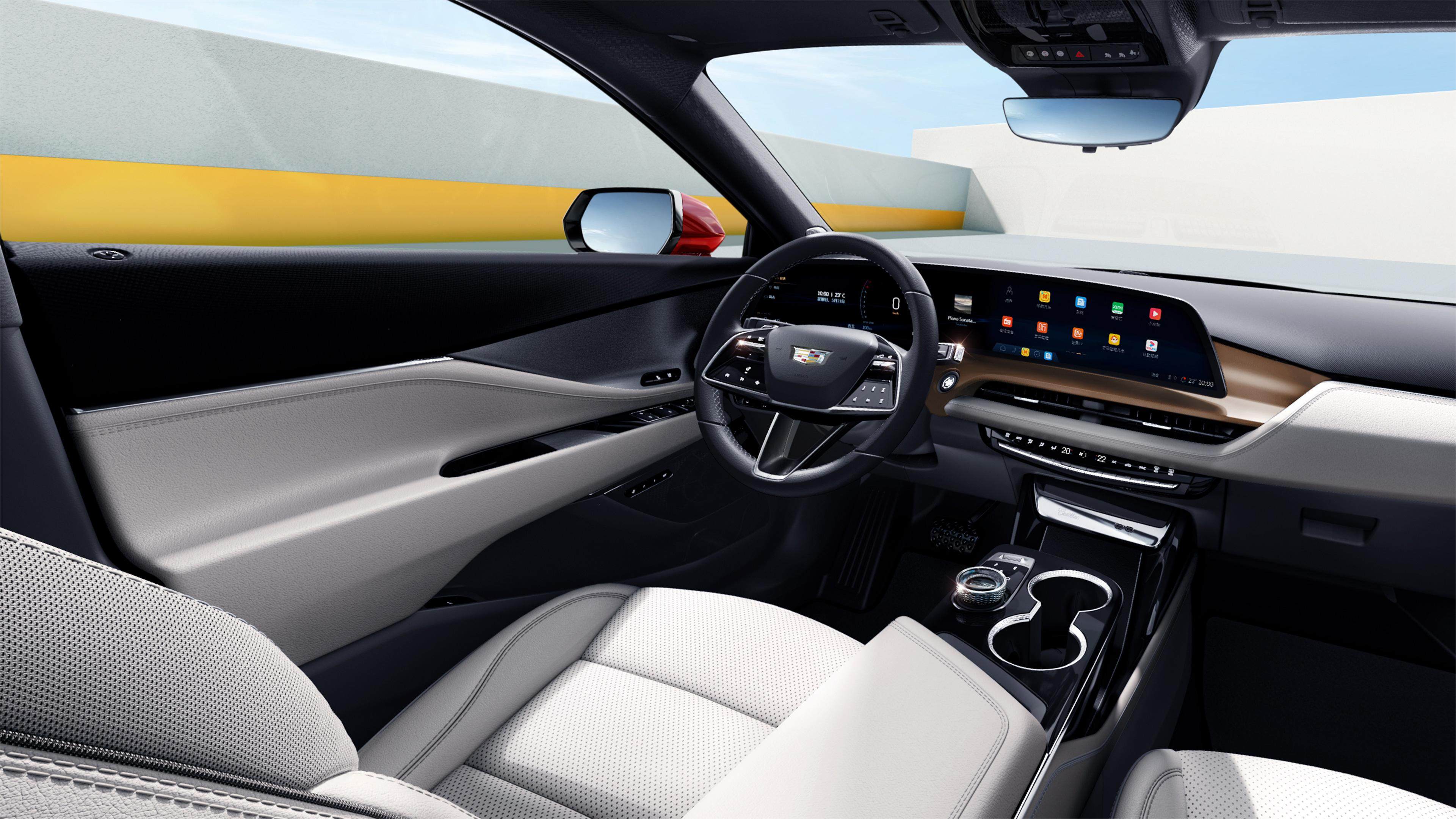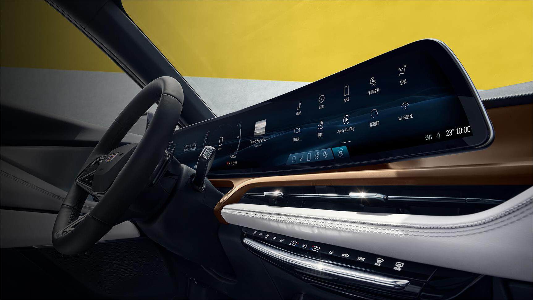 而尺寸高达33英寸9K曲面屏、怀挡设计和全新造型方向盘则是凯迪拉克GT4车型的独特元素。