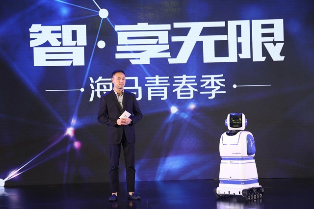 【海马汽车销售有限公司市场部部长浩潇潇与海马汽车智能机器人现场互动】