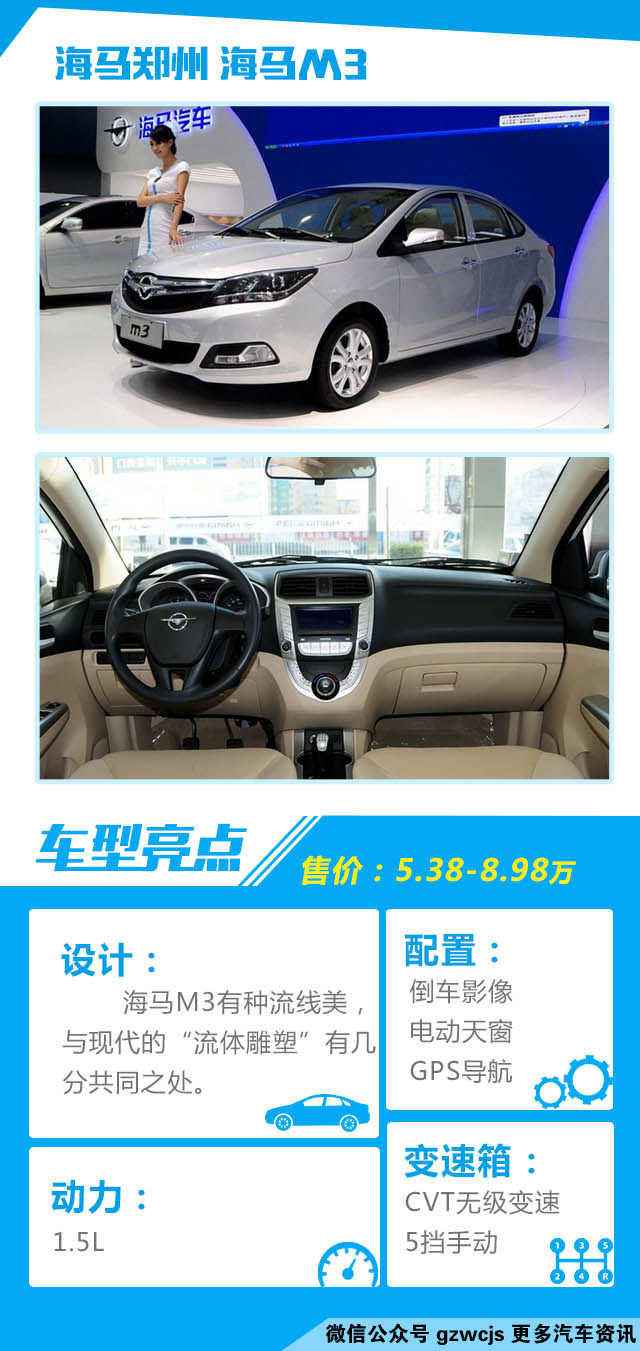点评:海马汽车近年来正在稳步前进,这一点从M3这款车型就可以看出,外观有一种流线美,很好看,而配置也是相当不错,教授推荐手动/CVT旗舰型,配置可谓是齐全,虽然比豪华型贵了6000元,但多了前后排头部气囊和自动头灯,还是比较值的。