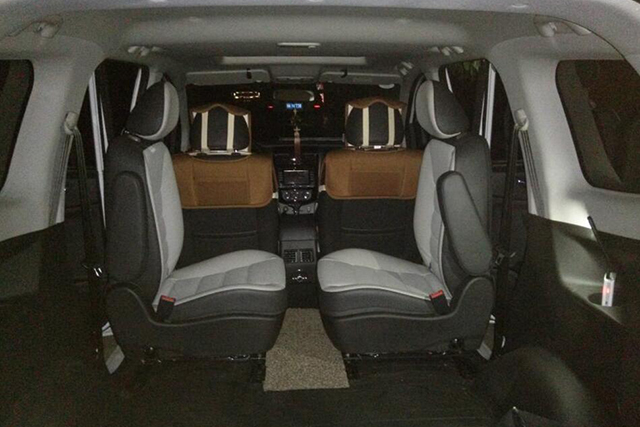 轿车式的前脸设计尊贵典雅,车身高度和长度比例非常协调,看起来不会有面包车的感觉。全黑的内饰非常潮流,极具运动感的仪表盘,导航功能丰富易用。车内座椅灵活多变(经过改装),能有多种不同的组合,很方便实用。