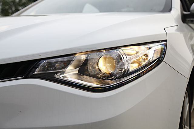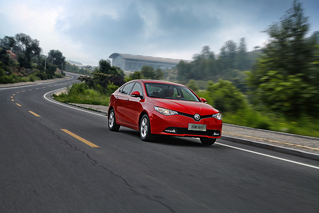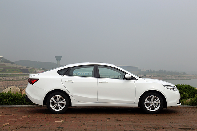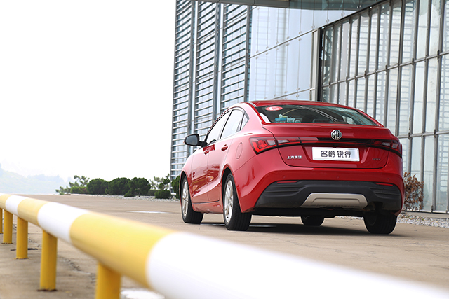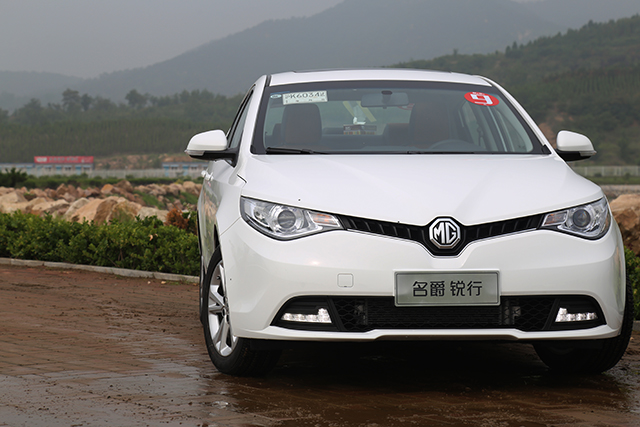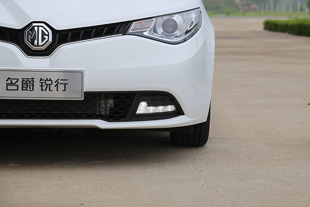 锐行作为MG品牌的三厢车型,与MG5有相似的地方。因此前脸看过去,两款车的前脸设计都采用了家族化的设计,也变得几乎如出一辙。2016款车型的前脸和现款锐行没有不同,视觉上给人怒目而视的感受。成就这样效果主要缘由还是来自向两边上扬的中网,比例较大的厂徽和细长的格栅形成对比。试驾的车型配备LED日行灯,因此就取消了前雾灯的设置。