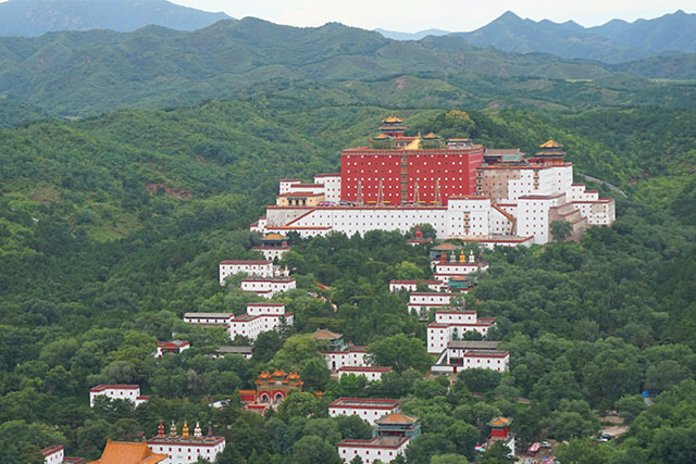 承德最著名的莫过于避暑山庄,其被誉为中国第一皇家园林,历经康熙、雍正、乾隆三朝,耗时89年建成。你很难想象有人愿意花将近一个世纪的时间去修建一个面积达到10万平米的“园林式度假酒店“,但貌似帝皇都喜欢用这种方式去拉动一下当地的GDP。“在过去,康熙每年都得到避暑山庄住上半年;你现在所处的地,是古代太监才能到的地方,也就是皇帝的三宫六院;当年皇帝嘿咻可是有时间限制的,太监定时定候站在这扇门边会催促皇上,这也就是皇帝不急太监急的由来。”身为承德当地人的导游绘声绘色地给我们这群外来客讲述着这里一草一木的故事。