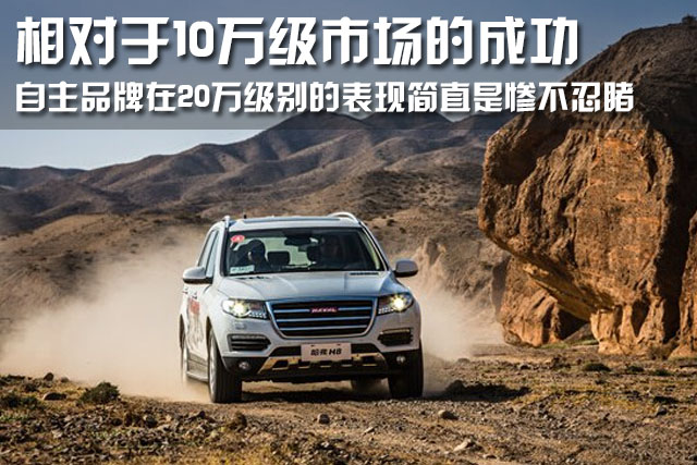 在我看来,大家都喜爱购买自主品牌SUV的原因主要有三个。价格合理、空间宽裕、配置丰富,这三点促使大多数人选择自主品牌SUV。观察那些有着亮眼销量的自主品牌SUV,无论是哈弗H6、传祺GS4亦或是宝骏560,它们的价格都处于10万元的级别。有没有一款是能够突破20万售价且销量还不错的自主品牌SUV?没有!至少在前销量榜的前一百名都没有。销量最多的,是长城的哈弗H8,上半年共卖出了3692辆,排名112。那问题来了,大家都那么爱自主品牌SUV,为什么不见有人买售价超过20万的自主品牌SUV?