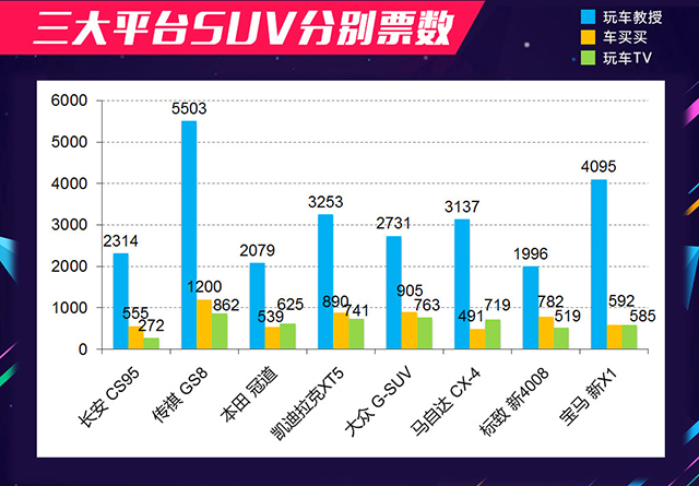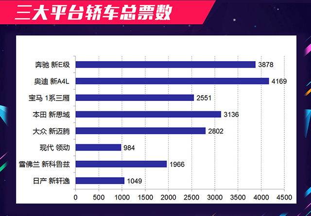 从数据中可以看出,三大平台用户对车的喜好是相近的,投票的结果都差不多,TOP3车型更是符合小编的心理预期。