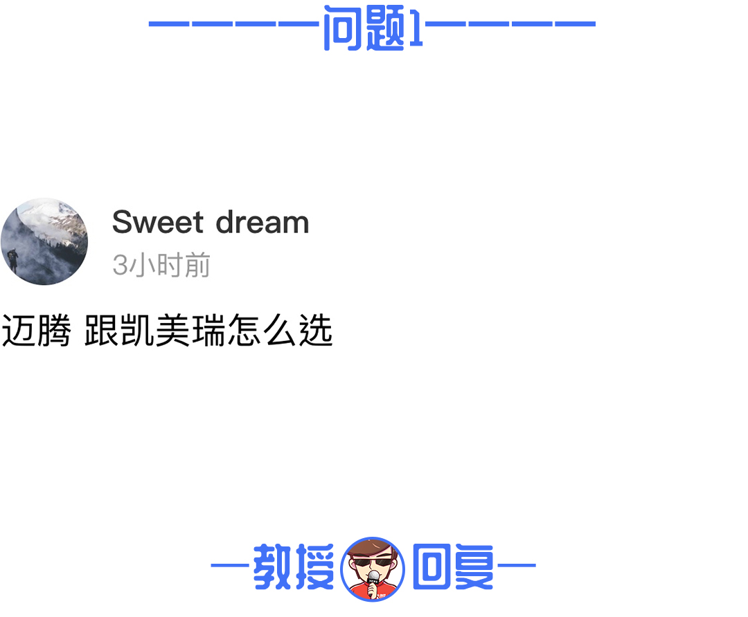 教授推荐首选年轻运动选择凯美瑞,家用代步或商务工作选择迈腾,全新凯美瑞主要分为豪华版和锋尚版,豪华版更适合沉实稳重的家庭代步使用,锋尚版更适合年轻运动的90后选择,重点是百公里油耗只有6.1L,惊人的低油耗更能讨广大市民的喜爱,多方面满足不同需求的消费者。