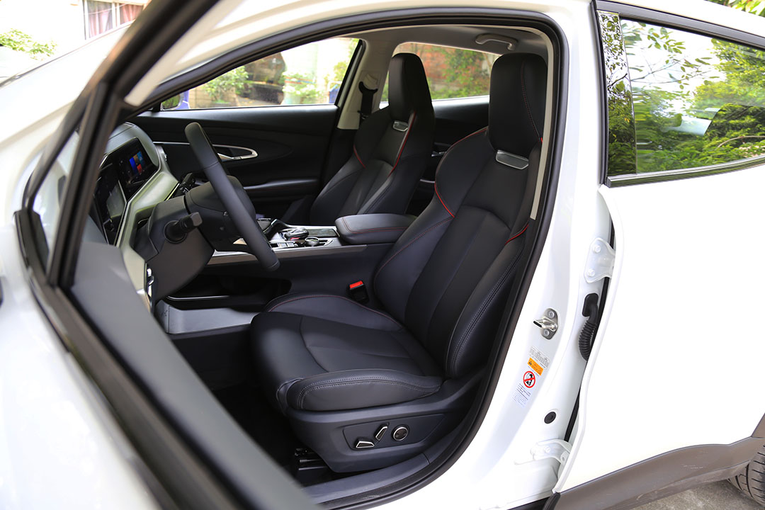 一体式的前排座椅的填充软硬适中,同时支持前后、靠背、腰部等多项电动调节,因此相对容易找到一个合适的坐姿,整体的视野和人机工程学都做得不错,能够保证长途驾驶的舒适性。