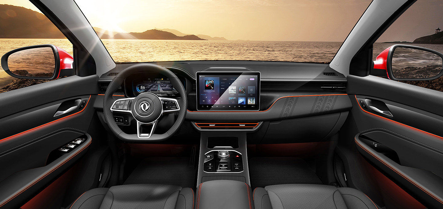 风光580的内饰设计非常有层次感,中控台用木纹进行点缀,其配备了传统机械指针仪表、10英寸悬浮式中控屏幕(手动版车型为内嵌式中控屏)以及三辐式多功能方向盘等;智能配置方面,风光580搭载了语音识别控制系统、车载Wi-Fi热点、手机APP远程控制等配置。