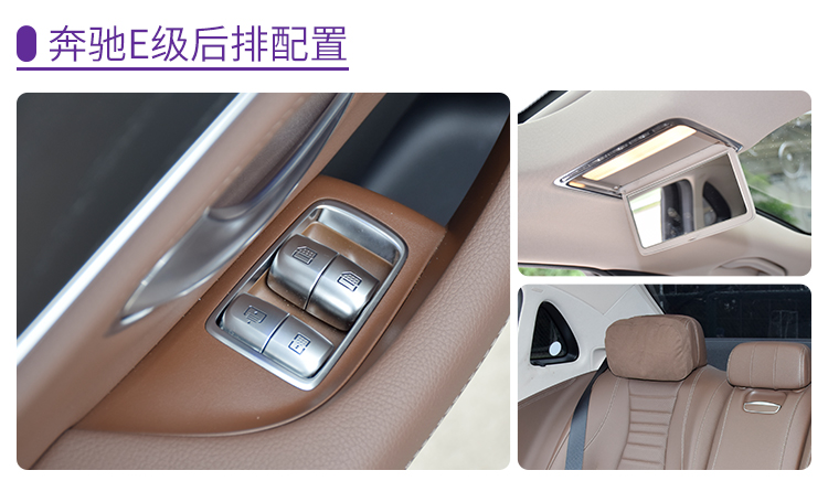 就配置来说,E级的后排有老板键、软头枕、后排独立出风口、电动遮阳帘、隐私玻璃、后电动遮阳帘、化妆镜。如果需要后排电动调节,可以选装。