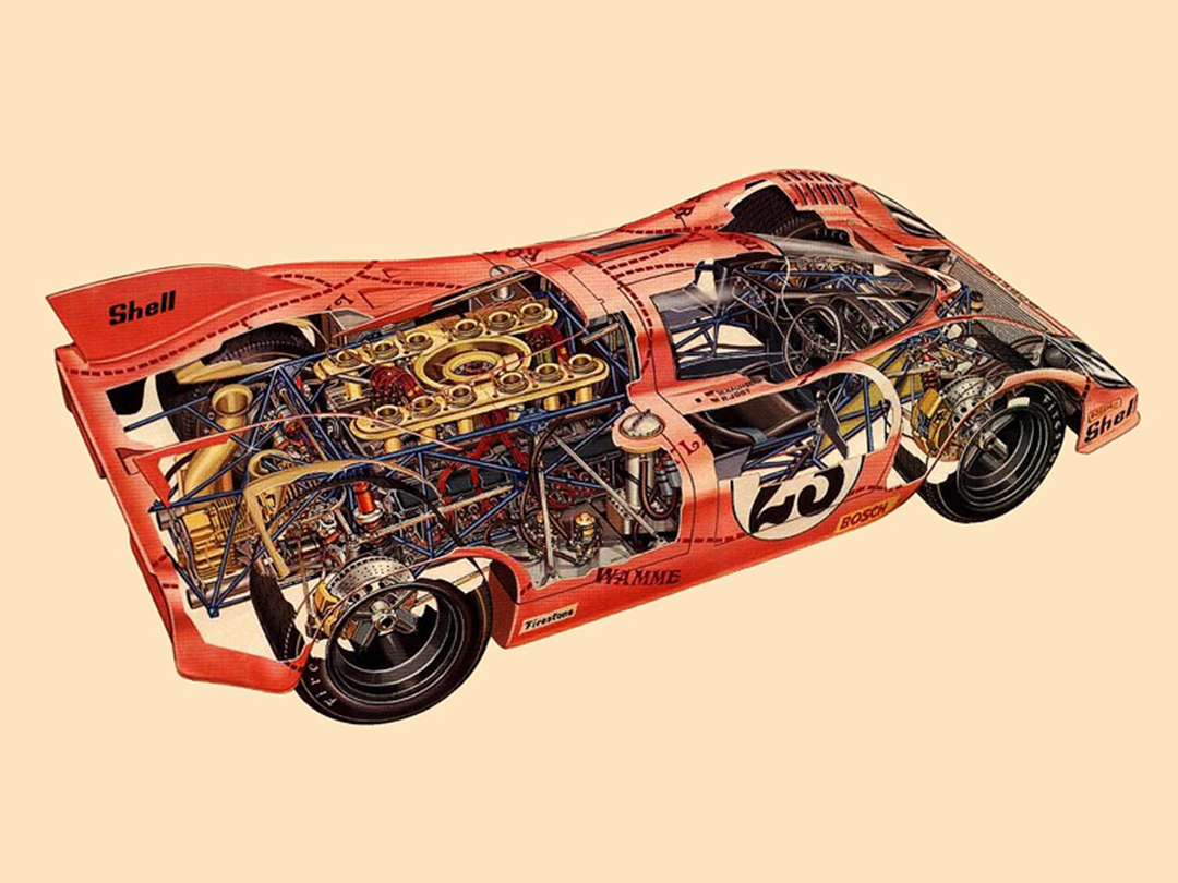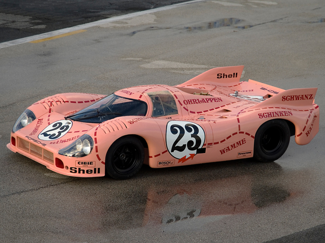 这款被画成猪肉解剖图模样的917/20赛车有一个“官方昵称”,叫Der Trüffeljäger von Zuffenhausen,意为祖文豪森当地一种用于寻找松露的猪;不过这个名字真是太长太复杂了,所以大家还是喜欢叫它Pink Pig,粉红猪。