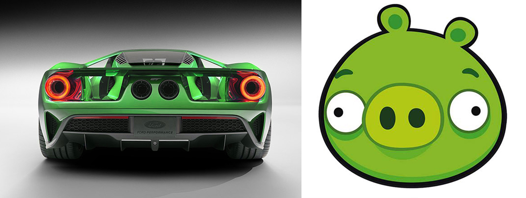 其实,这还是外观设计的“锅”!看看福特GT的尾部设计,两个大大的圆形尾灯,再加上位于中央的双出式排气,看起来是不是有种似曾相识的感觉?没错!这分明就是著名手游《愤怒的小鸟》里的反派猪的形象啊!