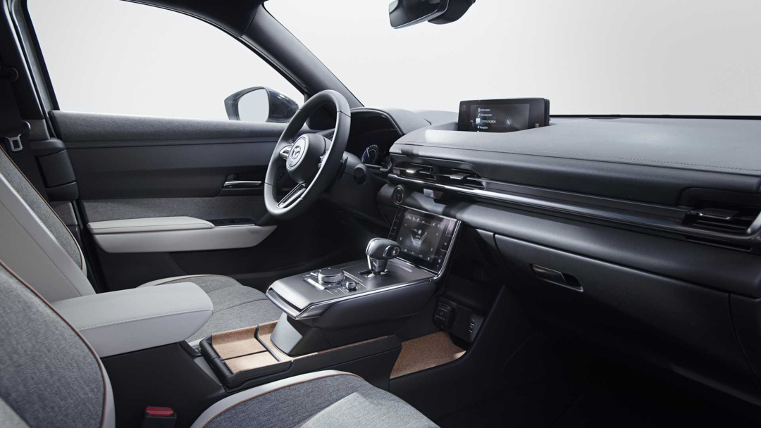 MX-30的内饰运用了非常多的环保材料,例如中控台的软木材质来自可再生的树木,车门饰板使用的是回收材料制成的纤维,包裹座椅的面料同样采用的是可回收材料。