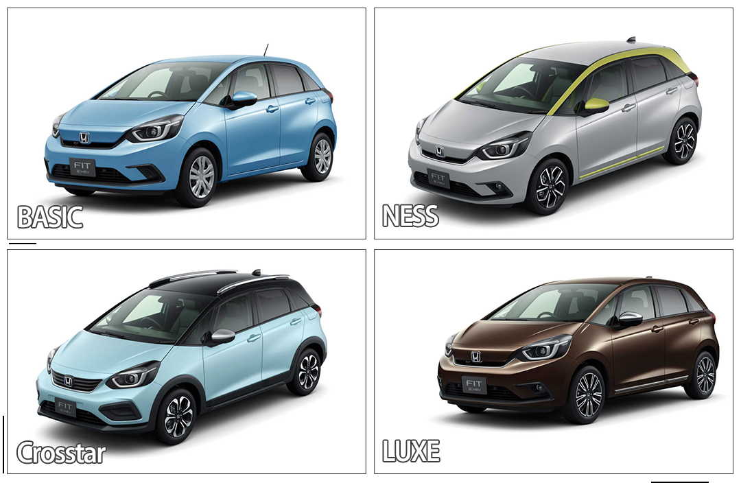 新飞度提供Basic,Home,Ness,Crosstar和Luxe五个版本,依照配置区分,Basic为入门级,Luxe为最高级,同时还提供几种不同的外观样式,其中Ness,Crosstar车型配备双色车身,看起来更加活泼。