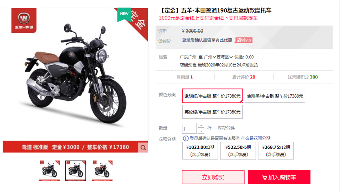作为世界上最大的摩托车生产商,本田在这方面当然也非常出色,来自五羊本田的鸷道190采用了来自本田的最新平台,以及采用了本田Neo SportCafé 的复古造型,并且配备了一副183cc的发动机,简直可以说的运动与复古兼备。