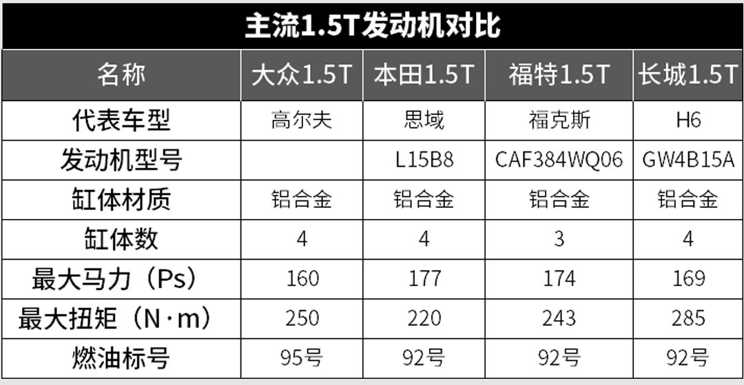 仅从动力参数上来看,新款的1.5T发动机与现款的1.4T变化似乎并不明显,最大功率仅增加了8kW,最大扭矩仍然保持不变,这样的数据甚至还赶不上主流的国产1.5T发动机。