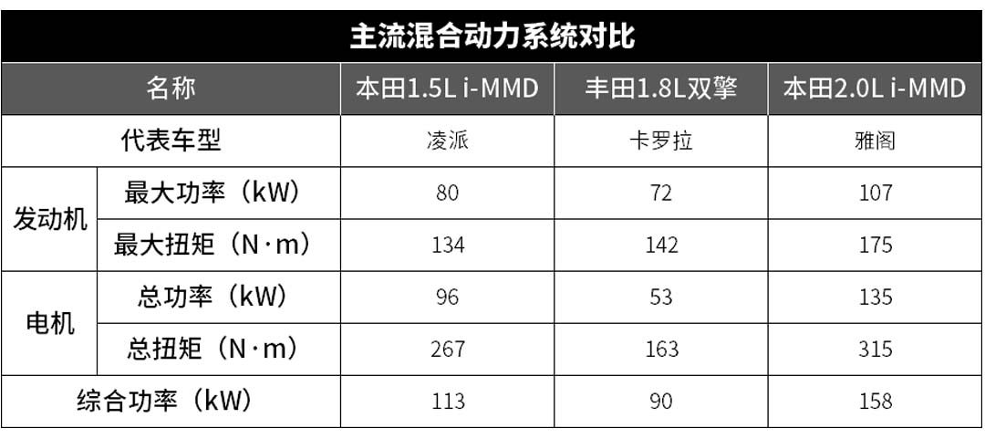 搭载在凌派锐·混动的这套1.5L i-MMD混动系统,虽然最大功率比雅阁上的那套2.0L i-MMD混动系统要低,但相比卡罗拉的1.8L双擎,还是要高不少,所以开起来动力会更充沛一些。