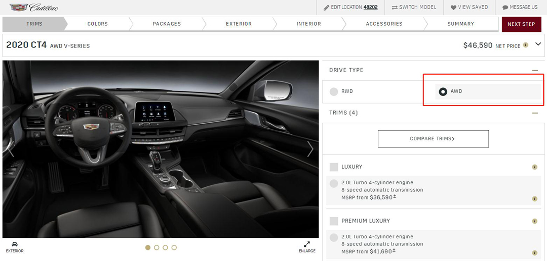 首先咱们要搞清楚,文章开头所提到的“紧凑型”非彼紧凑型,在美式英语语境里“compact sedan”泛指中型或紧凑型的轿车(也不难理解,毕竟那是万物皆大的美利坚)。价格方面以美国官网为例,更狂暴的CT4-V在美国售$4.4495万起,比普通版2.0T车型起售价贵了近1.2万美元。