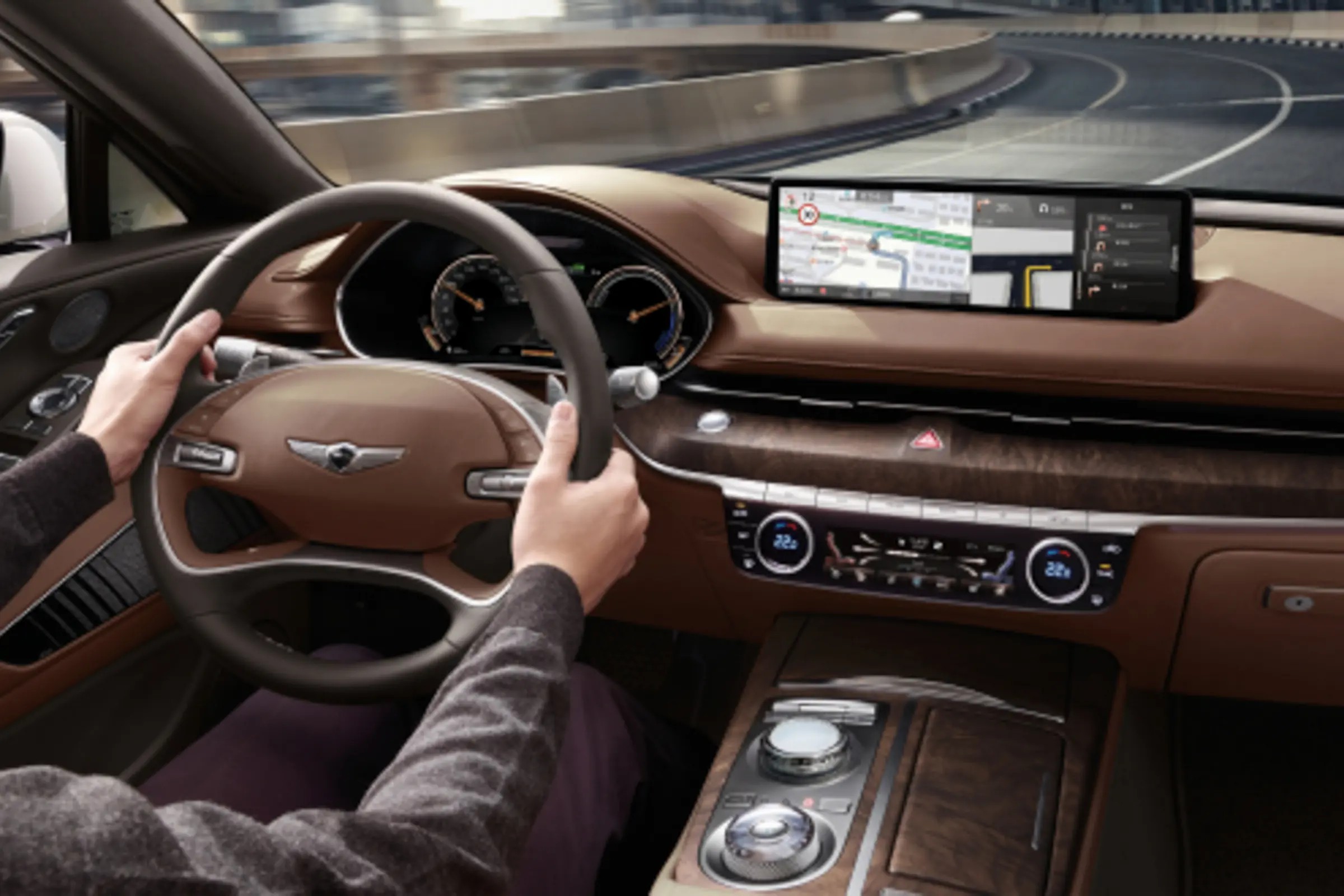 捷尼赛思G80 EV仅针对仪表盘的UI进行了调整,采用了扁平化的风格,新增了纯电车型的显示数据。其他方面则与燃油车型保持一致,并没有太多变化调整。