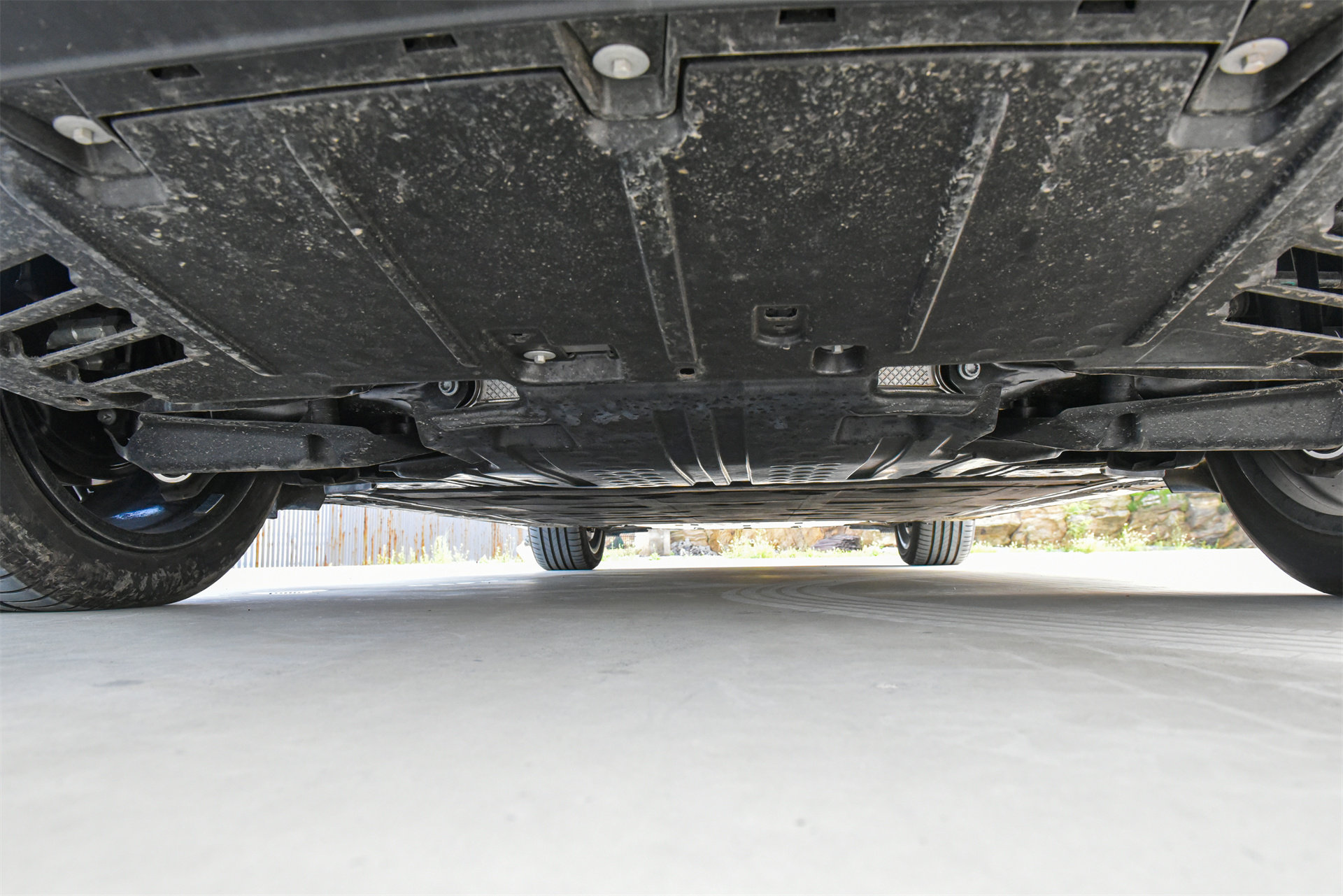 所以奔驰的弓形车身就是为了解决这两个先天问题而出现的。在弓形车身的帮助下,EQE SUV的整个车内空间是非常开阔的,这种感觉和同尺寸的燃油SUV并无二致。而且这个弓形车身,加上你看不见的全平底盘,以及遍布EQE SUV全车的各种空气动力优化部件---例如低风阻轮毂、前轮底板下方的,用于引导气流的前扩散器、再到后轮轮拱旁边一块不起眼的小小凸起物,这块小凸起能引导气流避开后轮前方的乱流区,让整台车实现0.25Cd的风阻系数。
