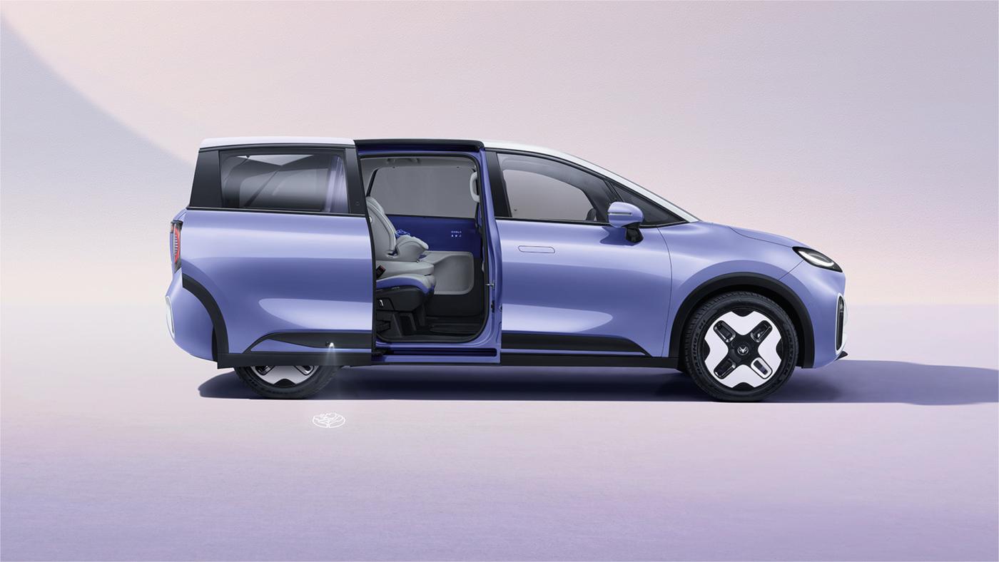 极狐考拉侧面设计主打一个圆滑,几乎没有什么棱棱角角。值得一提的是,新车侧面设计并非完全对称,它的右后门贴心地配备了光影感应侧滑门,而不常用的左后门则保留了常规的平开门,这样的设计即便放眼整个汽车领域都是极为少见的。