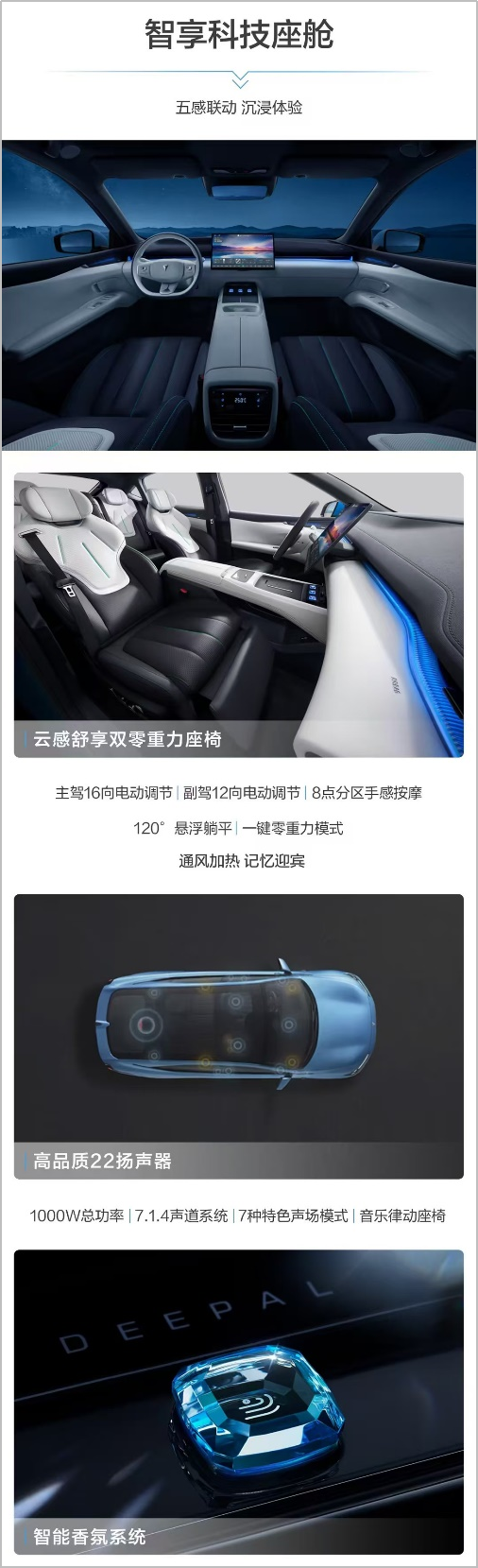 内部空间方面,后排头部空间952mm,后排超宽体座椅1382mm并拥有30°的人体工学理想角度,超高得房率以及473L掀背门超大后备箱(放倒后排1180L空间)。内饰细节上,同级首发前排双零重力座椅,成为“20万内唯一配备前排双零重力座椅轿车”。此外,高品质22扬声器、音乐律动座椅、智能香氛系统、情感交互64色氛围灯、智能空调系统、50W无线快充等更多功能配置,共同营造出“视、听、嗅、触、温”五感联动沉浸体验。
